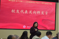 土木学院关向群作为校友代表发言。她谈到学生时代的回忆和同学们现今取得的成就,对母校师长的培养与教导表达了感谢。她说,母校为学生提供了发展的土壤,在这里,学生受到了最好的教育。在祝福母校的同时,她还希望,校友与母校的联系在未来能更加紧密。