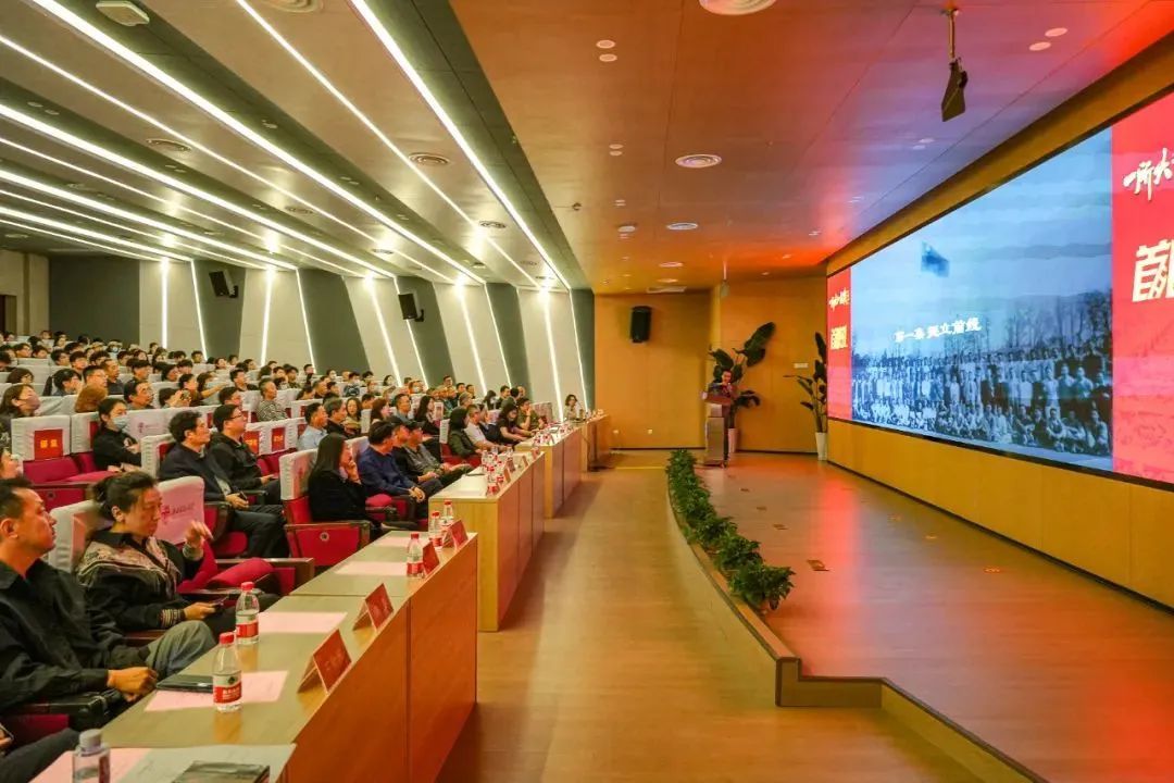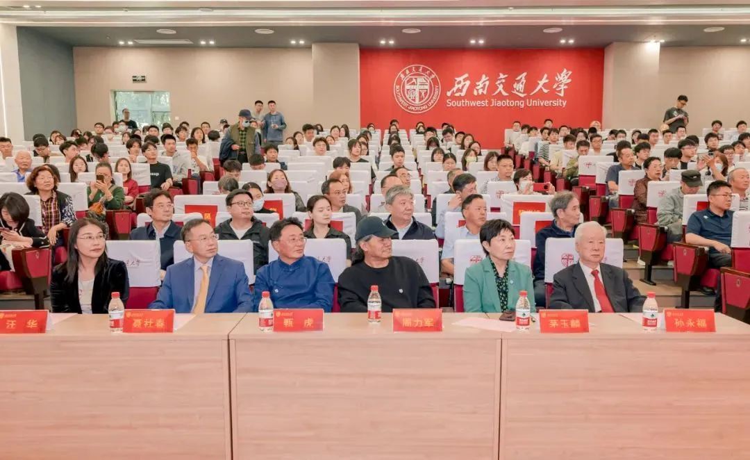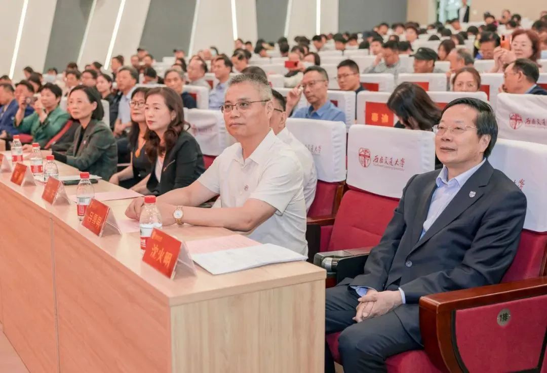 ▲孙永福(茅以升科技教育基金会主任)、杨爱华(william威廉英国官网党委副书记)、茅玉麟(茅以升科技教育基金会理事长)、何逸(工行成都分行副行长)、周力军(总编导、79级铁道运输专业校友)、汪华(福泉市政协主席)共同点亮按钮,启动纪录片《一所大学的抗战》首映