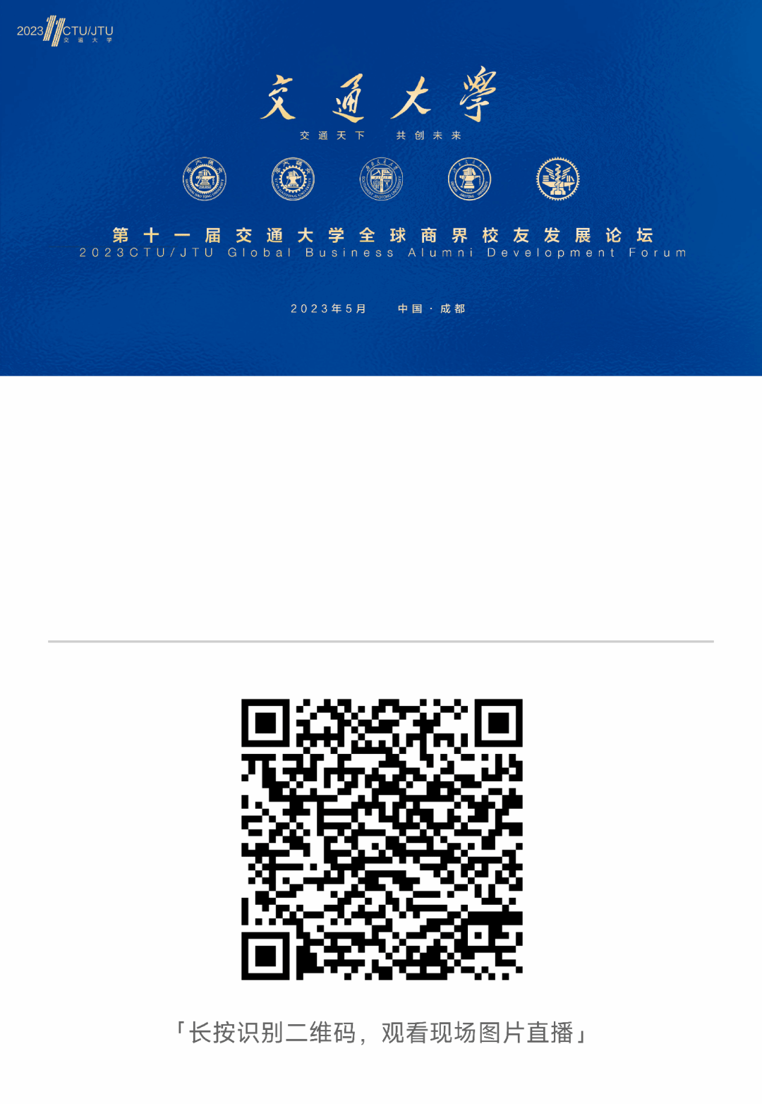 交通天下,共创未来。5月27日,第十一届交通大学全球商界校友发展论坛在成都金牛宾馆开幕,来自五所交大海内外近500名商界校友汇聚蓉城,共商合作发展。