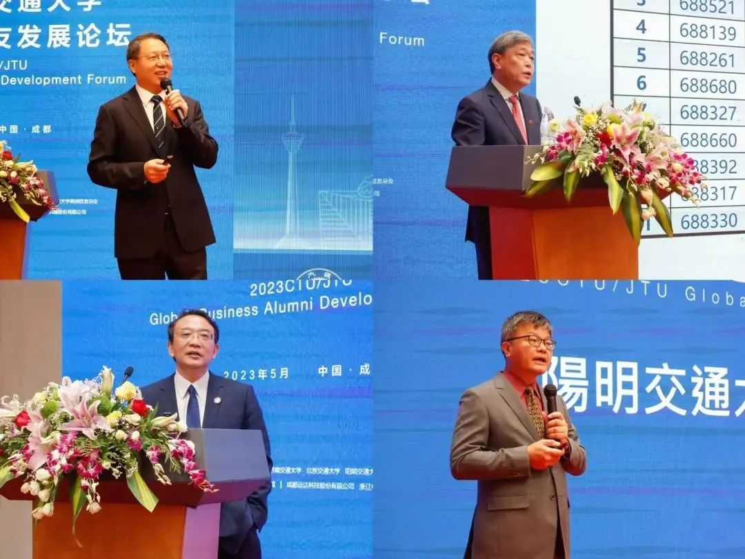 他表示,区域城市与大学相互滋养、相互赋能、相辅相成,学校持续深化与四川省、成都市的战略合作,积极推进创新融合发展,主动服务成渝地区双城经济圈建设,高质量推进人才自主培养、高水平推进科技自立自强,助力治蜀兴川再上新台阶。杨丹同与会嘉宾、校友分享了基于世界科技革命与产业变革、党和国家决策部署等不同层面背景对学校未来的转型发展思考,明确提出了转型目标与实践路径。他强调,学校的深层次改革和创造性实践赋予了“交通”更为广博与深远的时代意蕴,未来将更进一步贯彻新发展理念、服务新发展格局,为全面建成社会主义现代化强国、以中国式现代化全面推进中华民族伟大复兴持续不断贡献交大力量。