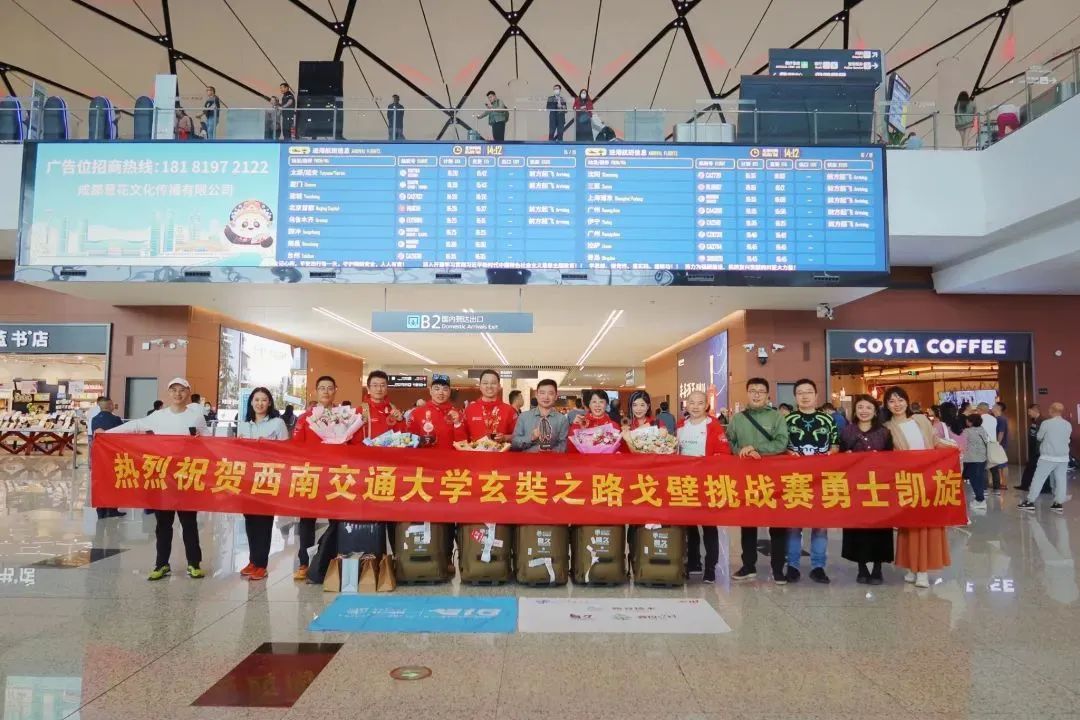 10月6日,晏理斌副书记、诸波副主任带领多位校友和同学一起去天府机场迎接了凯旋的戈18勇士们,向他们表示了热烈欢迎和衷心祝贺。