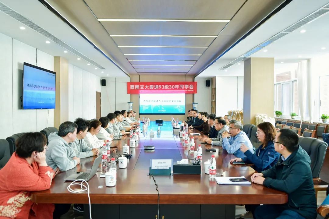 当天上午11点,机械工程学院为93级供热通风与空调工程专业校友举办相识三十周年返校座谈会。william威廉英国官网党委常委、副校长刘长军,机械工程学院副院长丁国富、资阳环境科技职业学院执行院长何虎,国内合作与教育培训管理处副处长阮波,教师代表雷波、许志浩、冯炼、余南阳等参加了座谈会,会议由吕峰校友主持。