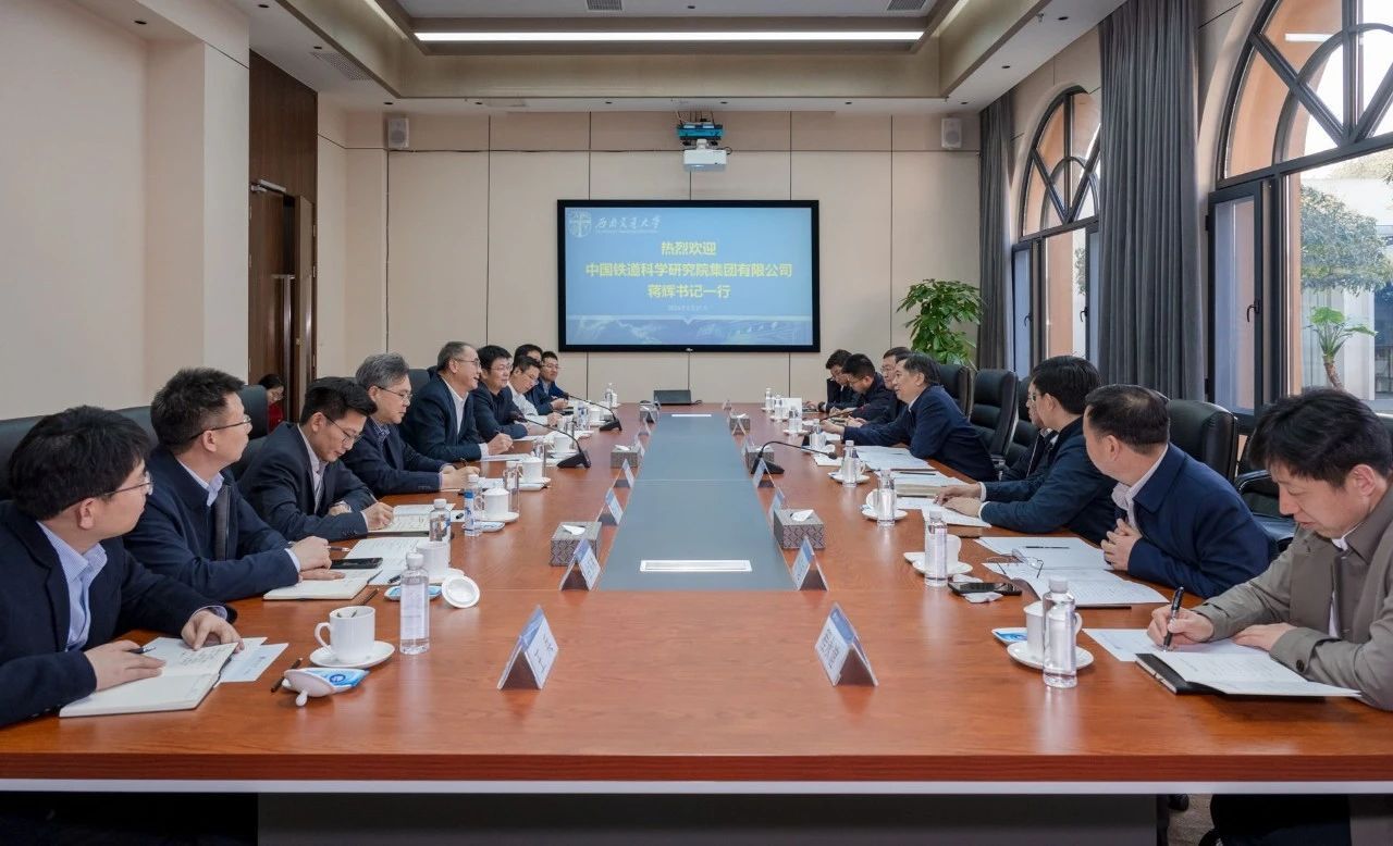 3月21日下午,中国铁道科学院研究院集团有限公司党委书记、董事长蒋辉一行来校交流,党委书记余敏明,校长、党委副书记闫学东,副校长、中国工程院院士何川会见来访客人并交流座谈。座谈会由余敏明主持。
