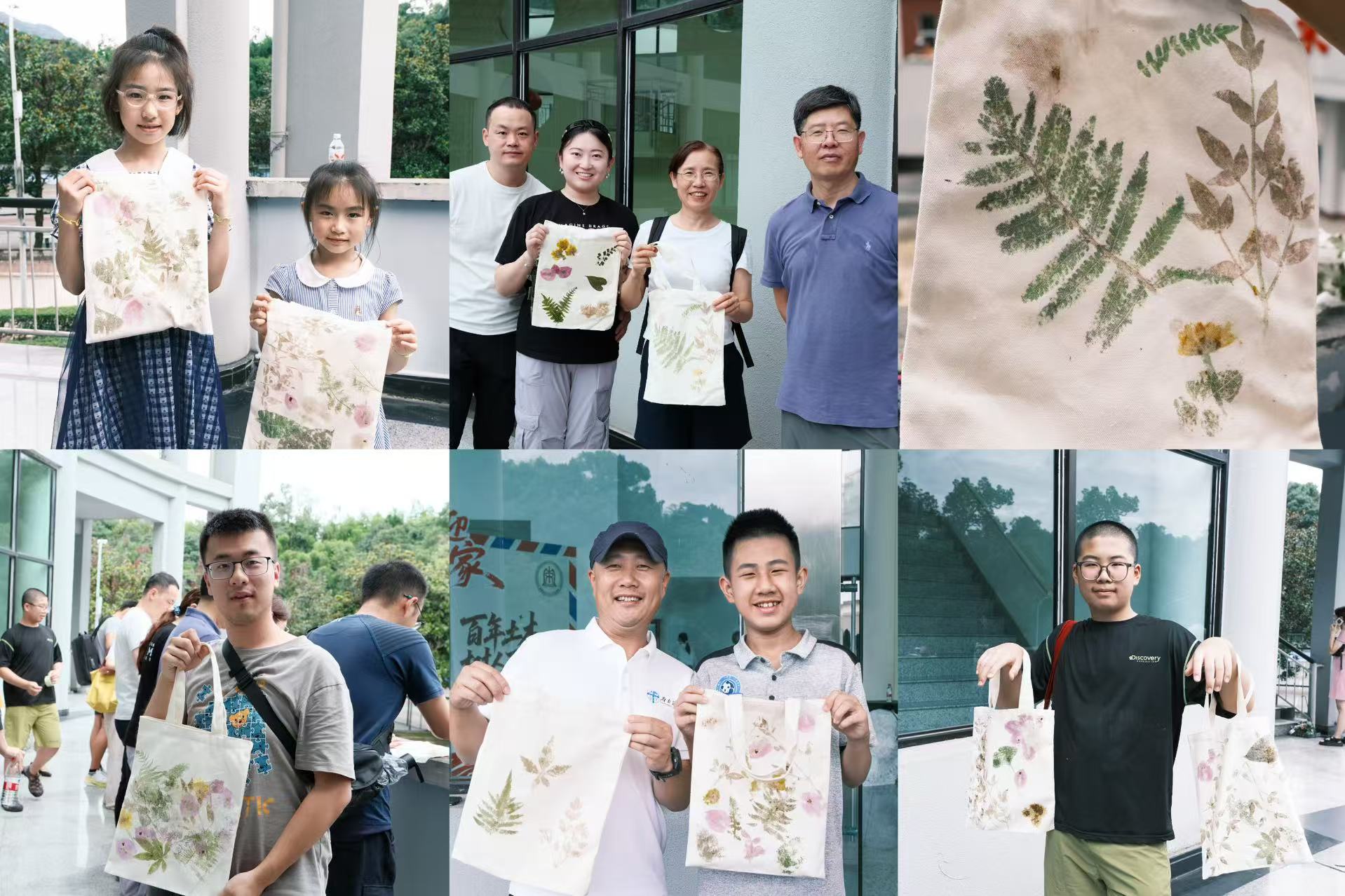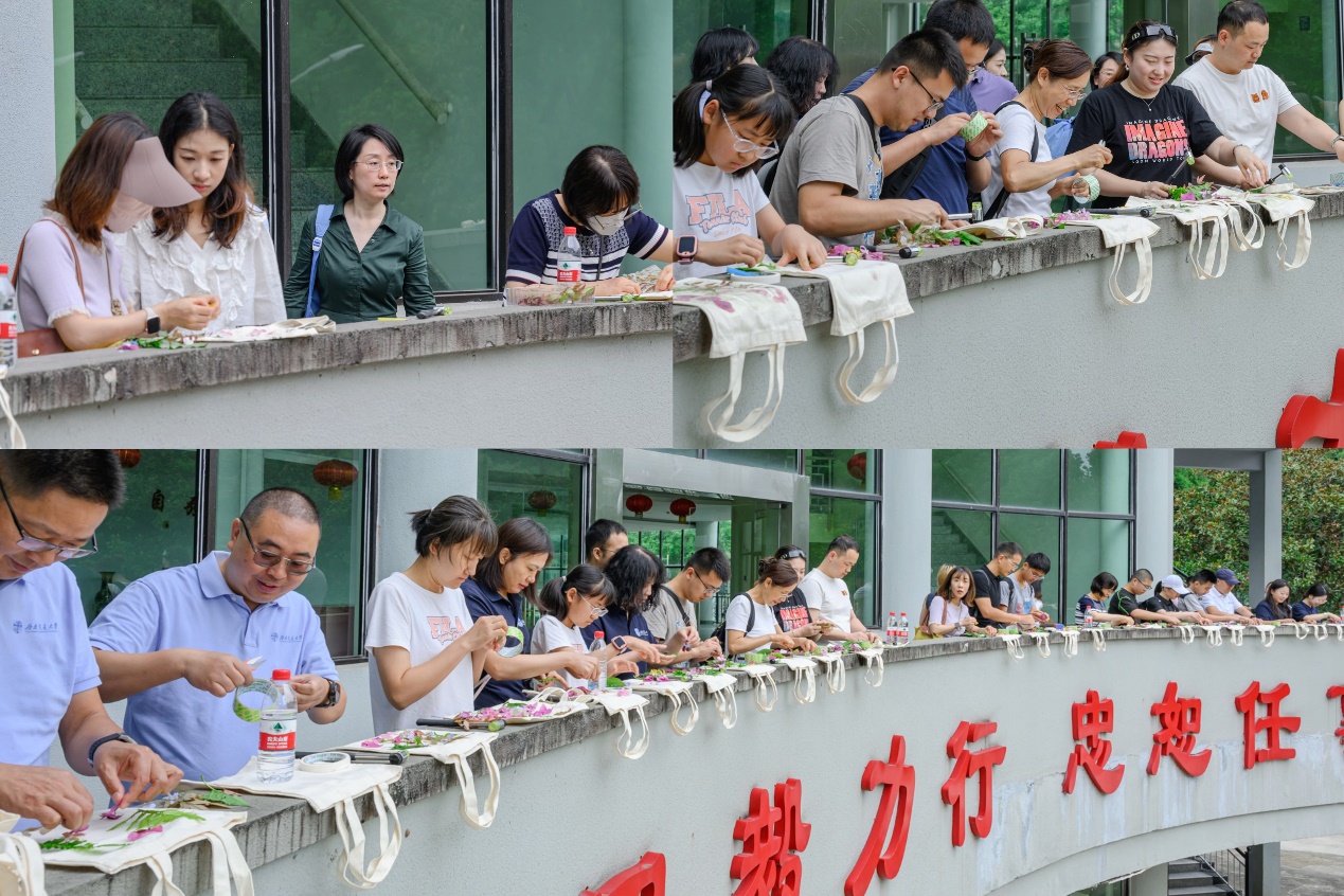 植物标本制作体验环节,校友们兴致勃勃地化身“手工艺人”,将精心挑选的植物标本拓印在帆布包上,创作出独一无二的自然印记。