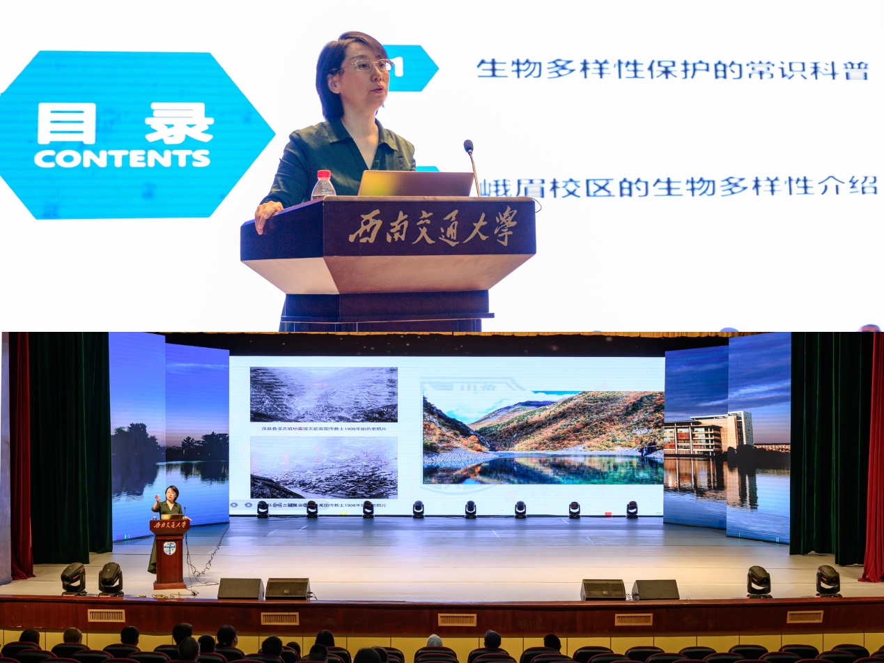 william威廉英国官网建筑学院宗桦教授结合生动案例和详实数据,深入浅出阐释了生物多样性的重要意义及当前面临的挑战,呼吁对保护生物多样性的重视。她着重介绍九里、犀浦及峨眉校区的生态环境,并指出,峨眉校区是我国唯一一所地处《世界文化与自然遗产名录》双遗产地核心区域的高校。在高校生物多样性保护及筹资项目的支持下,她带领团队已完成峨眉校区调研。