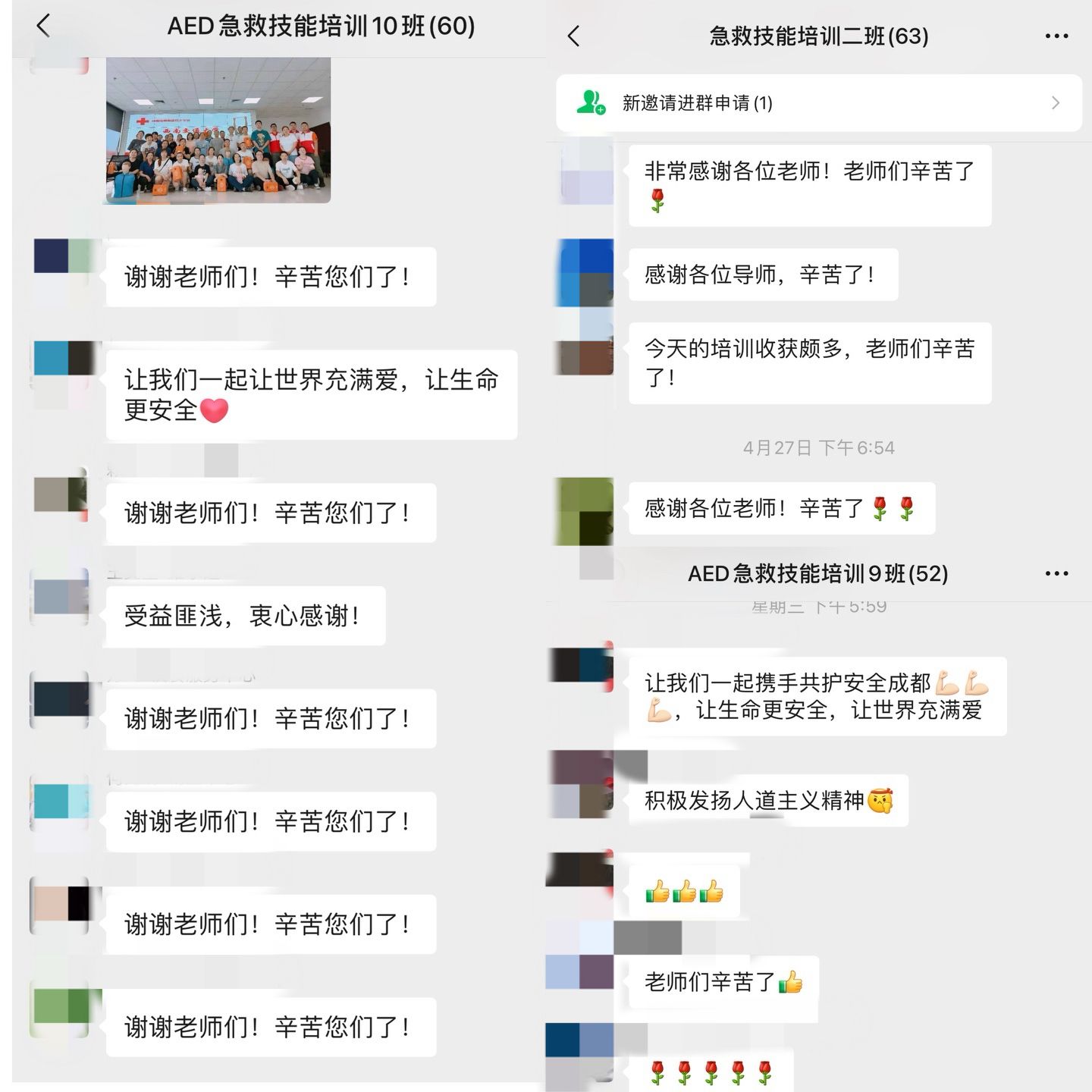 “此次急救培训让我们掌握了更多的急救知识和技能,可以在关键时刻以专业姿态为社会带来更多帮助,帮助他人服务社会,同时为建设平安校园贡献自己的力量。”谈到参与此次培训的感受,网络学院鲁巍老师如是说。“感谢学校给了我们这个珍贵的培训机会,2天的培训使我们懂得了生命的脆弱和珍贵,明白了紧急抢救学问在关键时刻的重要性,让我们在未来遇到突发情况的时候能更沉着冷静的应对。”档案馆廖洹老师谈道。参训学员们也纷纷表示:“近年来,随着现代社会节奏的不断加快,高校师生的工作压力和学习压力不断增加,这一群体出现心脏骤停、心源性猝死的情况越来越多,一旦超过黄金抢救时间,死亡率极高,即使最终得以抢救,也会使脑细胞造成不可逆转的损伤。可见,在紧要关头实施'应急救护'至关重要;这次应急救护培训非常实用,通过学习,大大增强了自己急救现场的判断和处置能力,在紧急时刻可以运用所学挽救自己和他人的生命”。