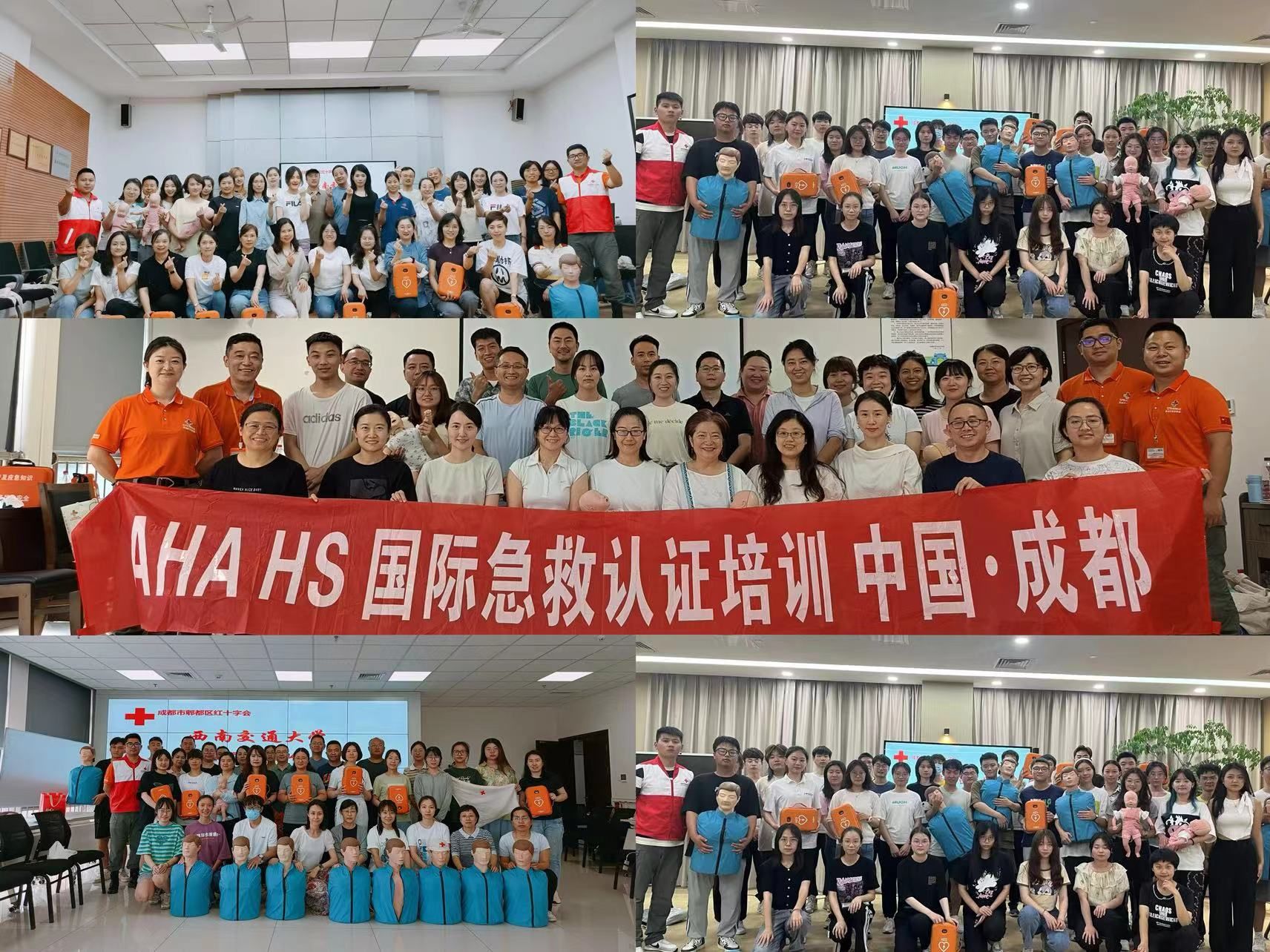 在腾讯公司的支持下,首批30台AED急救设备在学校九里校区和犀浦校区布设完毕,但是配备急救设备只是普及AED的第一步,如何开展好后续的培训,让更多人掌握急救技能才是关键该项目面向全校师生招募校园急救志愿者和校园急救导师,得到了全校师生的积极响应。截至目前,基金会已举办急救志愿者培训10场、急救导师培训2场,通过系统的急救培训,志愿者们掌握了基础的急救知识和基本的操作要领,累计425名急救志愿者顺利通过考核获得救护技能认证,成为一名光荣的红十字救护员;另有30名教职工参与了美国心脏协会AHA急救培训,并顺利通过考核,成为了校园急救导师。校园急救导师将会为学校的急救课程建设打下良好的基础。